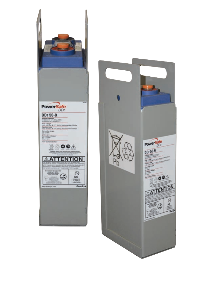Engineered for long life and low maintenance Built to the most stringent quality standards, PowerSafe DDr batteries combine several integrated performance features. Thanks to VRLA technology, the batteries never require watering. Large copper posts enhance their high performance rate and thicker positive plates help ensure longer life. Cells are encased in protective steel cans (modules) that maintain constant, uniform compression for the life of the battery, while built-in handles make installation safe, fast and easy in even in the most challenging situations.