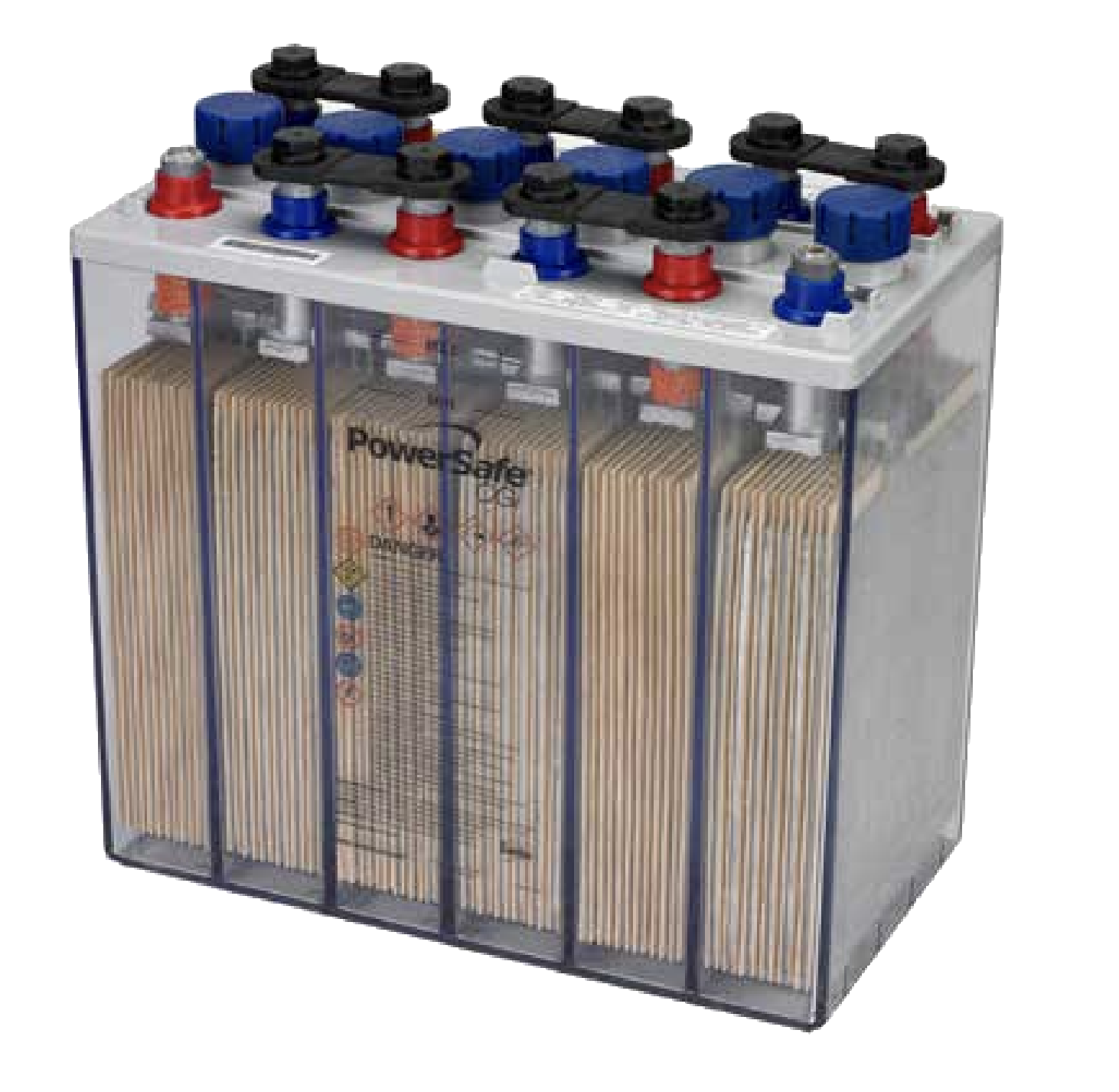 The rod plate composition in PowerSafe OGi batteries has a high energy density design that supports long life. Their low antimony alloy grid cuts water consumption and associated maintenance costs, while the high integrity terminal and jar design maximizes operational safety and inhibits electrolyte leaks. PowerSafe OGi batteries also feature raised posts to ease maintenance and NERC measurement requirements, plus a clear Styrene Acrylonitrile (SAN) jar that allows for easy inspection of the plates and electrolyte level.