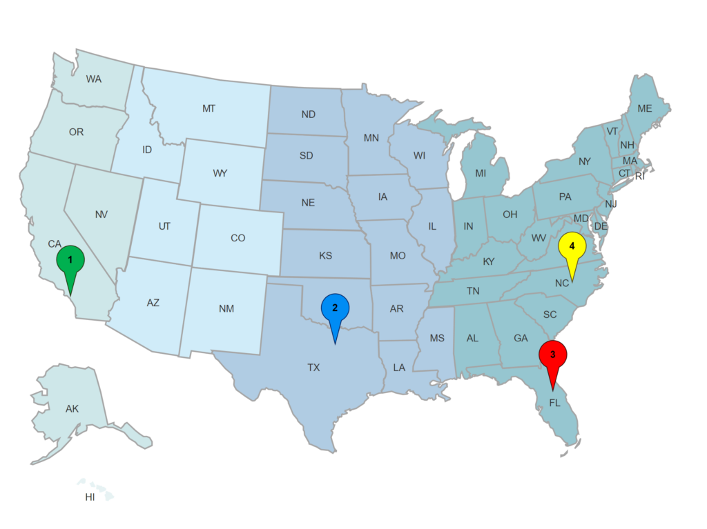 We have three convenient locations across the United States for sales, distribution, and manufacturing with an additional sales office serving customers in the North East.