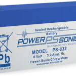 PowerSonic PS Series PS-832F1 8 Volt / 3.2 Ah @20 Hr Lead Acid Battery with F1 (0.187") Terminals / ABS...