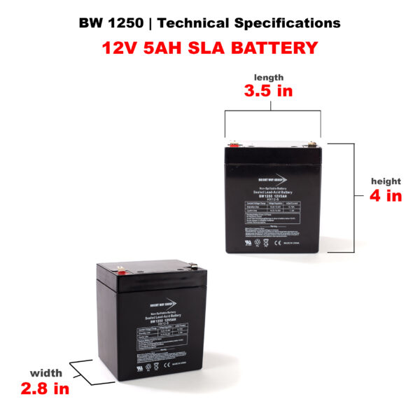 Bright Way BW Series BW 1250 F1 12 Volt / 5.0 Ah @20 Hr with F1 (0.187″) Terminals