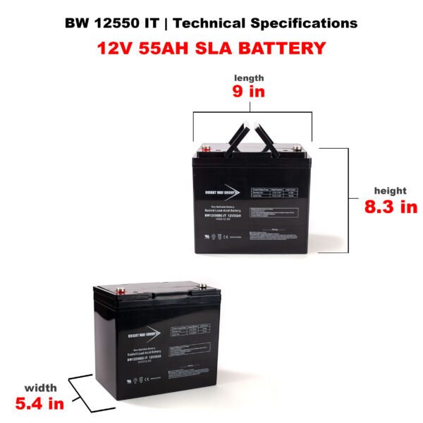 Bright Way BW Series BW 12550 IT 12 Volt / 55 Ah @20 Hr with Recessed M6 Terminals
