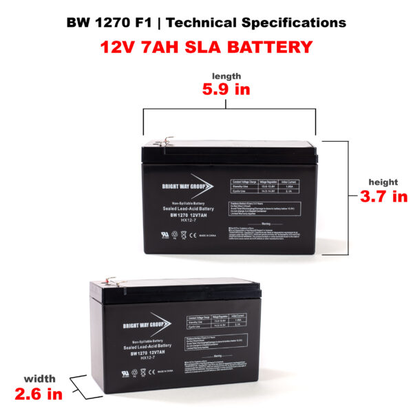 Bright Way BW Series BW 1270 F1 12 Volt / 7.0 Ah @20 Hr with F1 (0.187″) Terminals