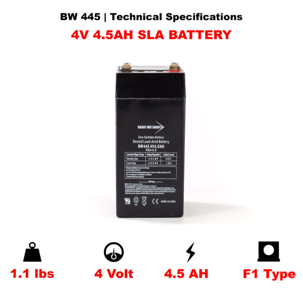 Bright Way BW Series BW 445 4 Volt / 4.5 Ah @ 20 Hr with F1 (0.187″) Terminals