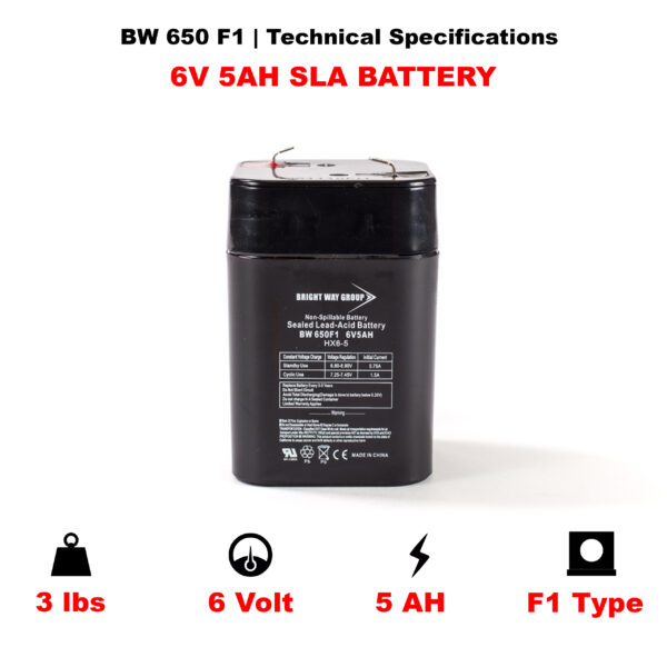 Bright Way BW Series BW 650FL 6 Volt / 5 Ah @ 20 Hr with F1 (0.187″) Terminals