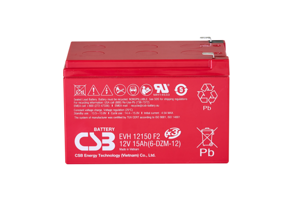 CSB EVH12150F2 EVH Series 12 Volt / 15 Ah @20 Hr with F2 (0.250″) Terminals and ABS Plastic Case