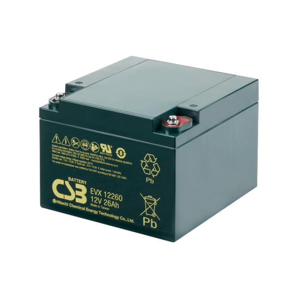 CSB EVX12260 EVX Series 12 Volt / 26 Ah @20 Hr with Recessed Terminals and ABS Plastic Case