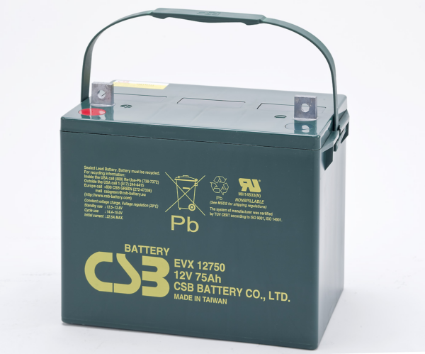 CSB EVX12750NB EVX Series 12 Volt / 75 Ah @20 Hr with Nut & Bolt Terminals and ABS Plastic Case