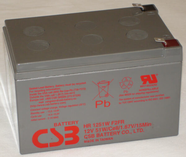 CSB HR1251WF2FR HR Series 12 Volt / 13.5 Ah @20 Hr with F2 (0.250″) Terminals and Flame Retardant UL94-V0 Case