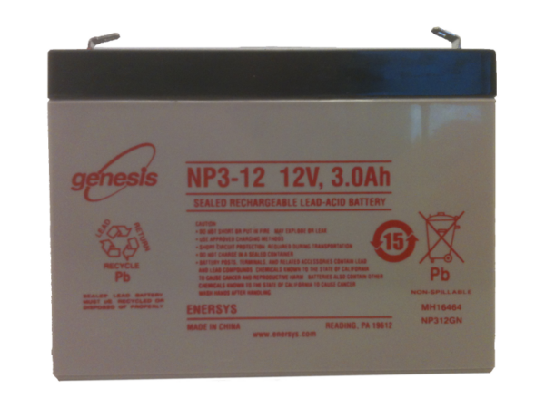 EnerSys Genesis NP Series NP3-12 12 Volt / 3 Ah @ 20 Hr with F1 (0.187″) Terminals