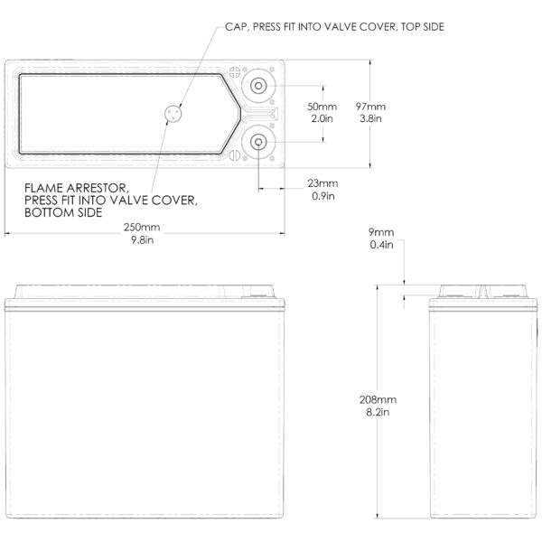 | Dimensions (mm) | 250 mm (L) x 97 mm (W) x 208 mm (H) |