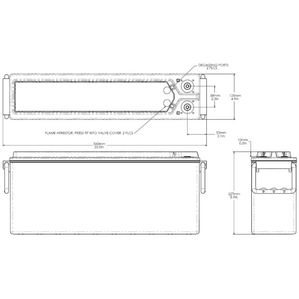 Dimensions (mm) 560 mm (L) x 125 mm (W) x 227 mm (H)