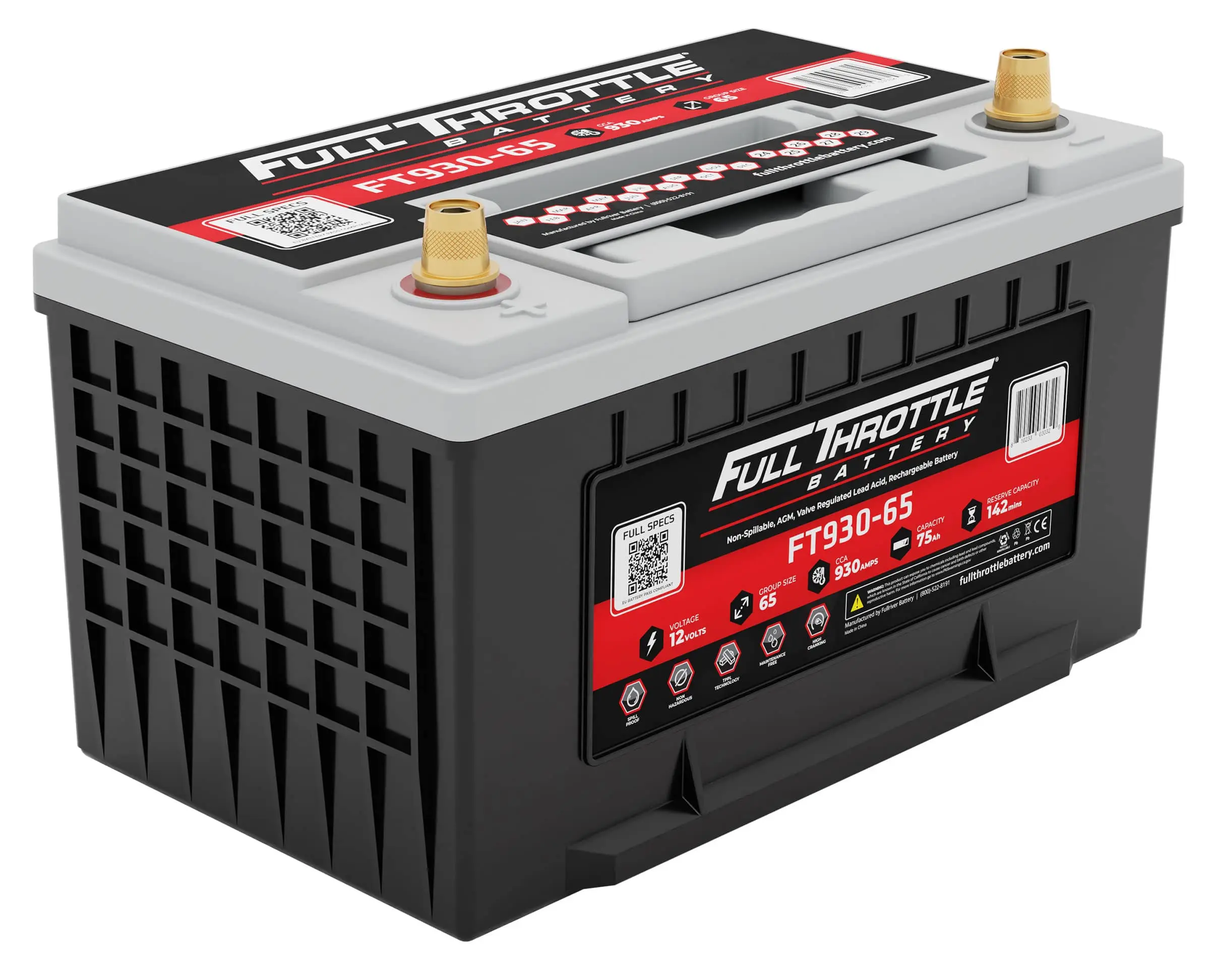 FullRiver FT930-65 Lead Acid FT Series 12 Volt / 75 Ah @ 20 Hr with SAE (Removable) Recessed Terminals and Flame Retardant ABS Plastic Case