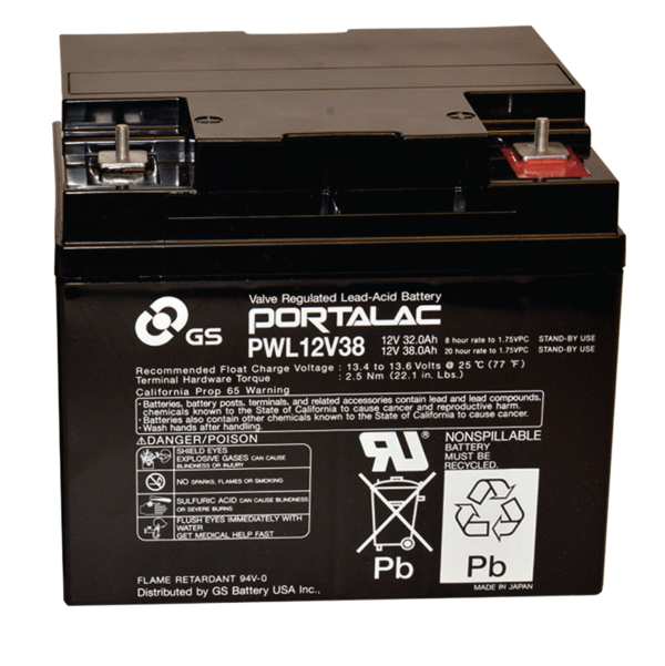 GS Yuasa PWL Series PWL12V38 12 Volt / 38 Ah @8 Hr with Nut & Bolt (M5) Terminals