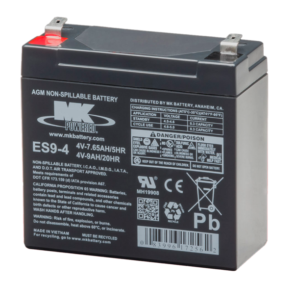 MK Battery High Rate Series ES9-4 4 Volt / 9 Ah @20 Hr with F2 (0.250″) Terminals