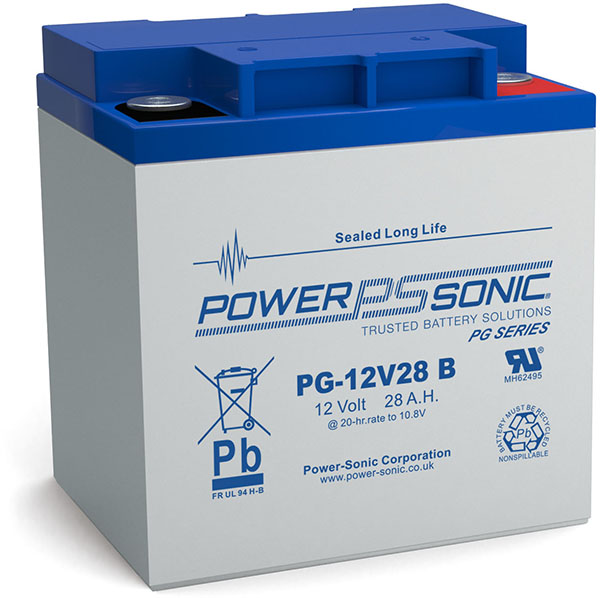 PowerSonic PG Series PG-12V28H 12 Volt / 28 Ah @20 Hr Lead Acid Battery with Recessed M5 Terminals / ABS Plastic Case