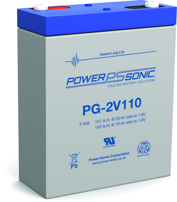 PowerSonic PG 2V Series PG-2V110 2 Volt / 100 Ah @10 Hr Lead Acid Battery with Recessed M6 Terminals / ABS Plastic Case