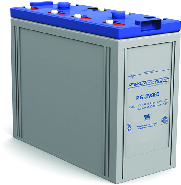 PowerSonic PG 2V Series PG-2V860 2 Volt / 800 Ah @10 Hr Lead Acid Battery with Recessed M8 Terminals / ABS Plastic Case