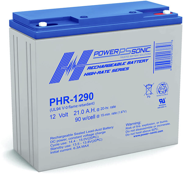 PowerSonic PHR Series PHR-1290 12 Volt / 90 W @15 Min Lead Acid Battery with Recessed M6 Terminals / Flame Retardant UL94-V0 Case