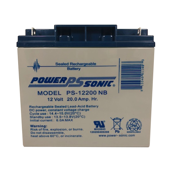 PowerSonic PS Series PS-12200NB 12 Volt / 20 Ah @20 Hr Lead Acid Battery with Nut & Bolt (M5) Terminals / ABS Plastic Case