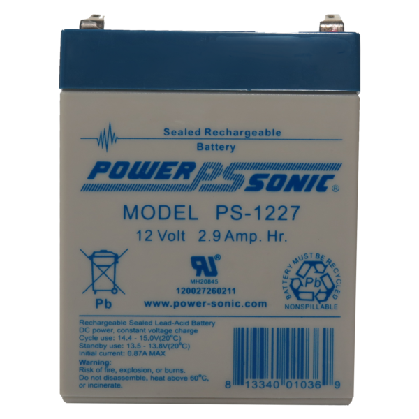PowerSonic PS Series PS-1227 12 Volt / 2.9 Ah @20 Hr Lead Acid Battery with F1 (0.187″) Terminals / ABS Plastic Case
