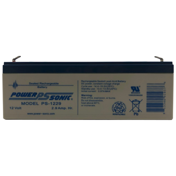 PowerSonic PS Series PS-1229L 12 Volt / 2.9 Ah @20Hr Lead Acid Battery with F1 (0.187″) Terminals / ABS Plastic Case