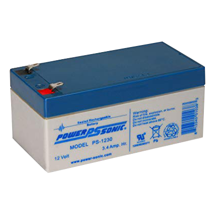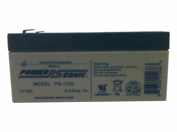 PowerSonic PS Series PS-1230 12 Volt / 3.4 Ah @20 Hr Lead Acid Battery with F1 (0.187″) Terminals / ABS Plastic Case