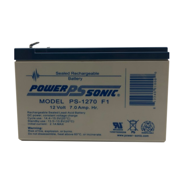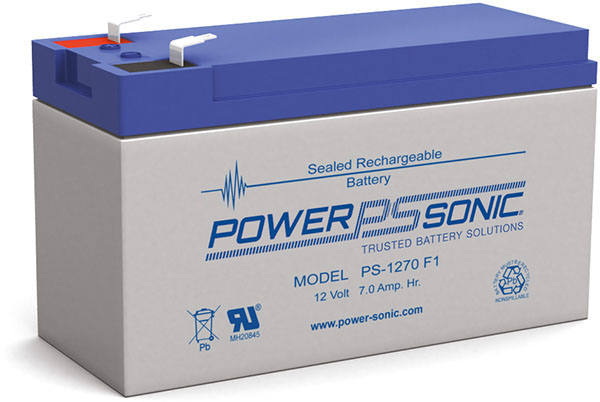 PowerSonic PS Series PS-1270F1 12 Volt / 7.0 Ah @20 Hr Lead Acid Battery with F1 (0.187″) Terminals / ABS Plastic Case