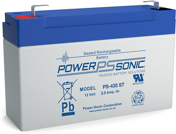 PowerSonic PS Series PS-435ST 4 Volt / 3.5 Ah @20 Hr Lead Acid Battery with F1 (0.187″) Terminals / ABS Plastic Case