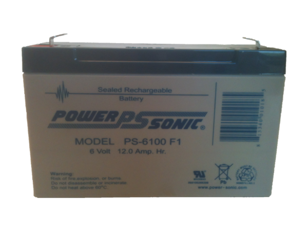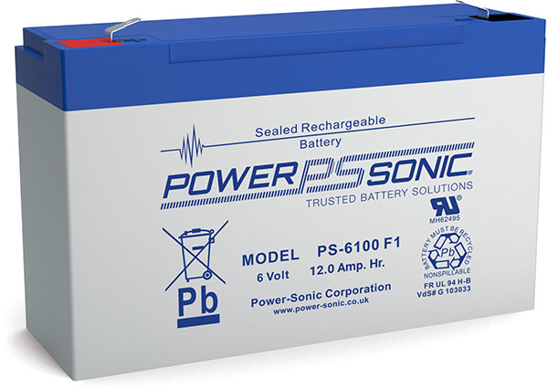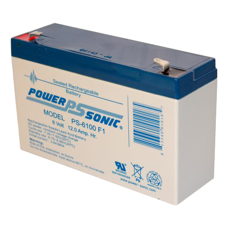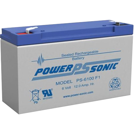 PowerSonic PS Series PS-6100F1 6 Volt / 12 Ah @20 Hr Lead Acid Battery with F1 (0.187″) Terminals / ABS Plastic Case