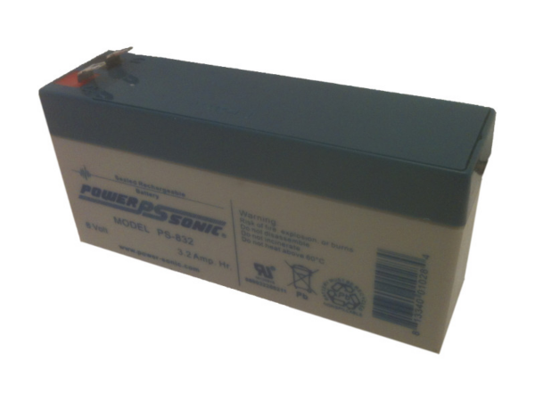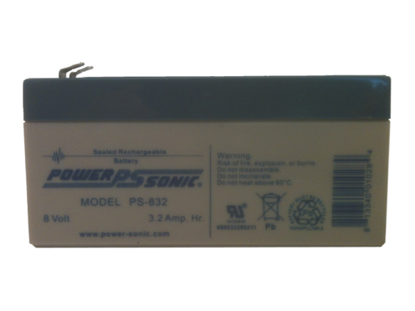 PowerSonic PS Series PS-832F1 8 Volt / 3.2 Ah @20 Hr Lead Acid Battery with F1 (0.187″) Terminals / ABS Plastic Case