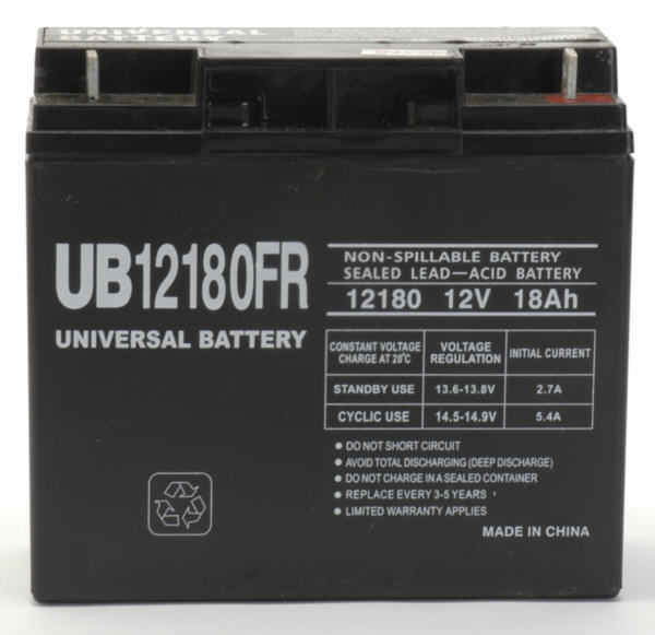 Universal Power UB12180FR UB Series 12 Volt / 18 Ah @20 Hr Lead Acid Battery with Nut & Bolt (M5) Terminals