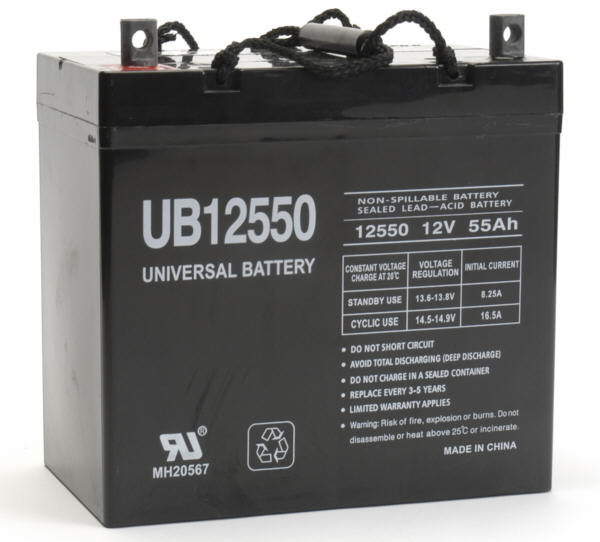 Universal Power UB12550 UB Series 12 Volt / 55 Ah @20 Hr Lead Acid Battery with Nut & Bolt Terminals