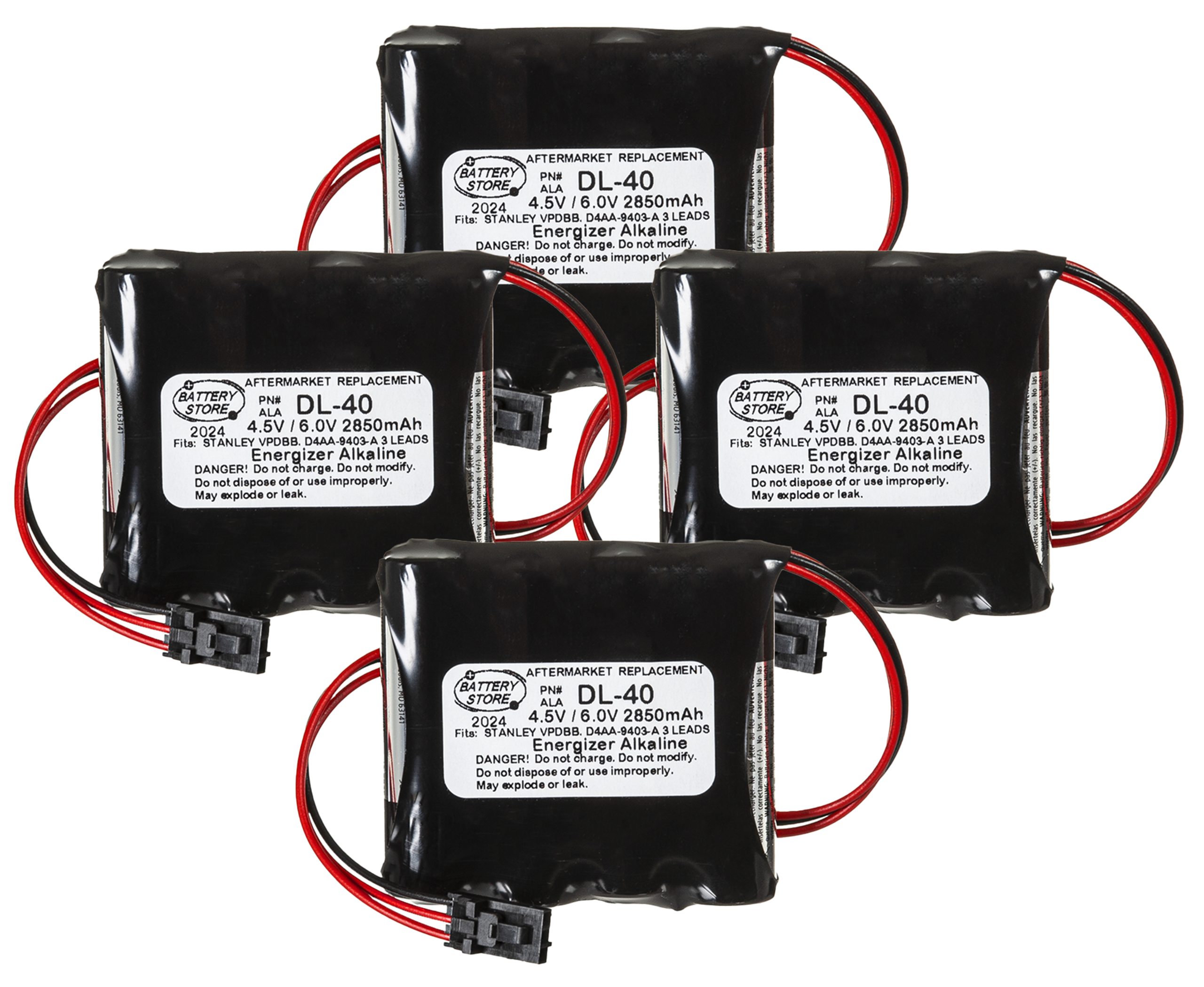 ( QTY 40 )Replacement 4.5V/ 6.0V 2850MAH 1X4 AA ENERGIZER FOR STANLEY VPDBB. DL-40 3 LEADS (ALA STANLEY VPD BB,...